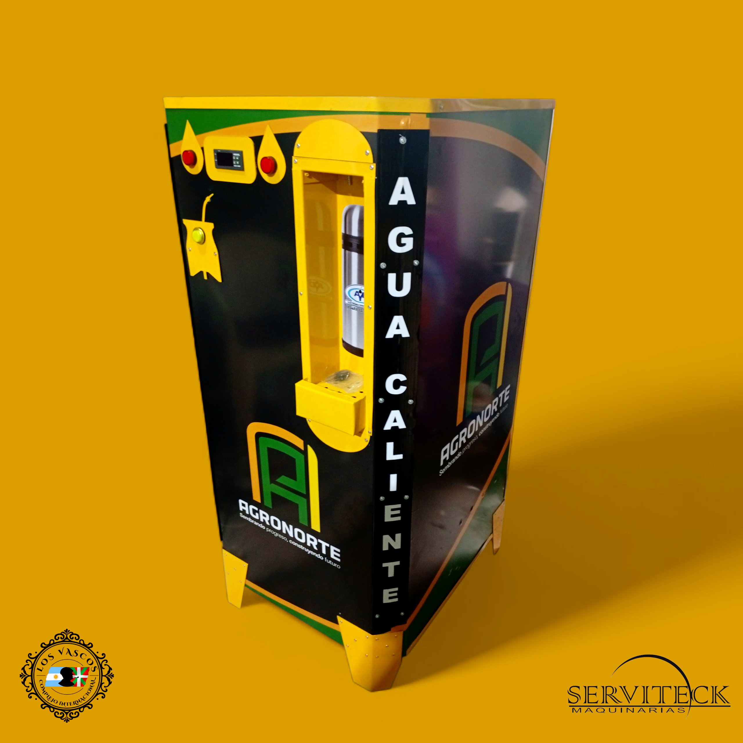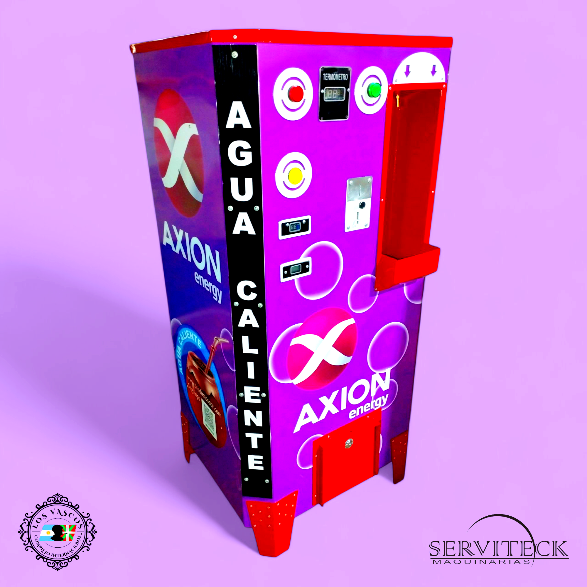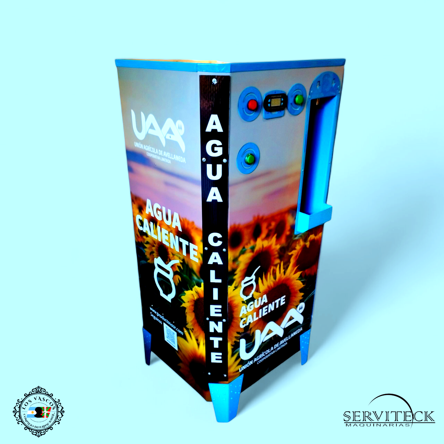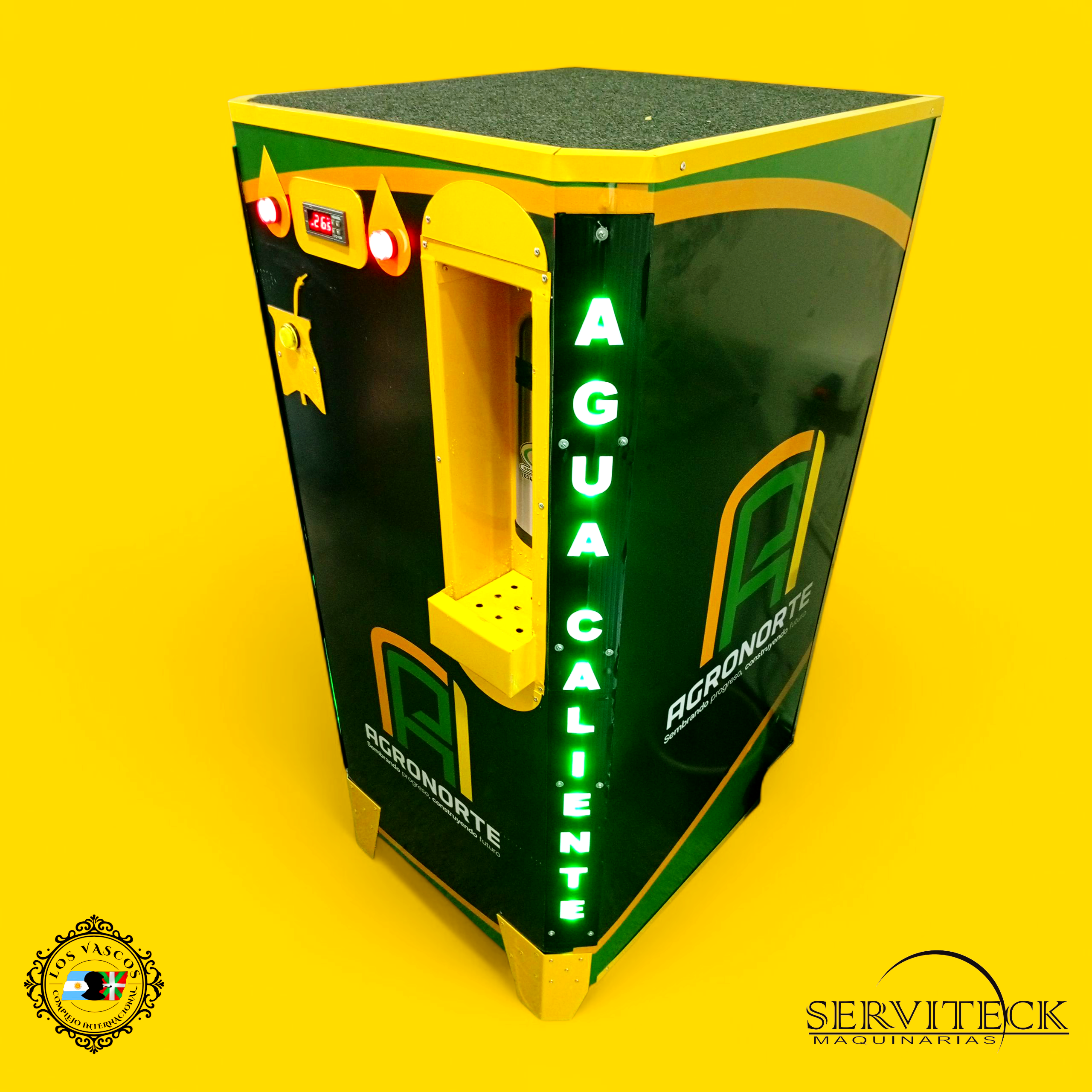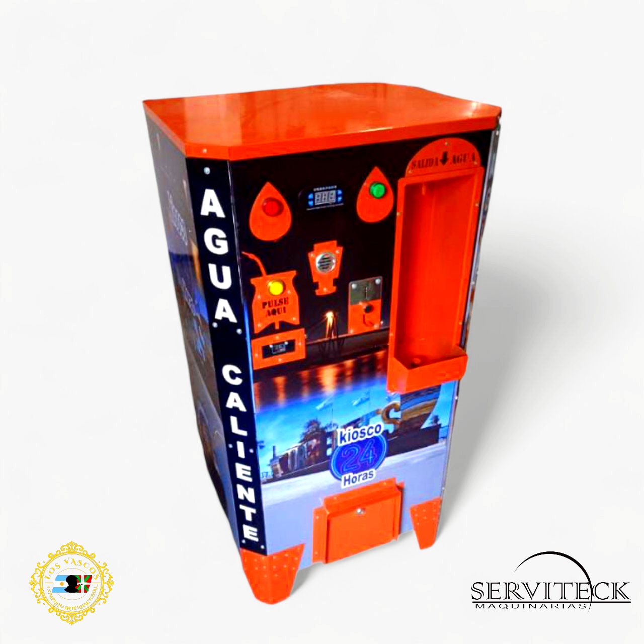 1. Dispensadora de agua caliente mod. Full Intermedio con tanque de calentamiento mediante serpentinas, termostato digital programable led, Contador digital de Créditos Spots Led Publicitarios y Timer Temporizador Programable led.